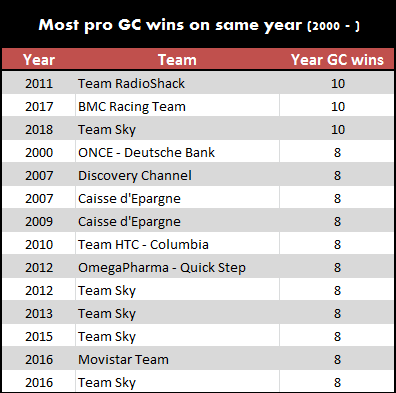 2 Mitchelton-Scott 11 victoires